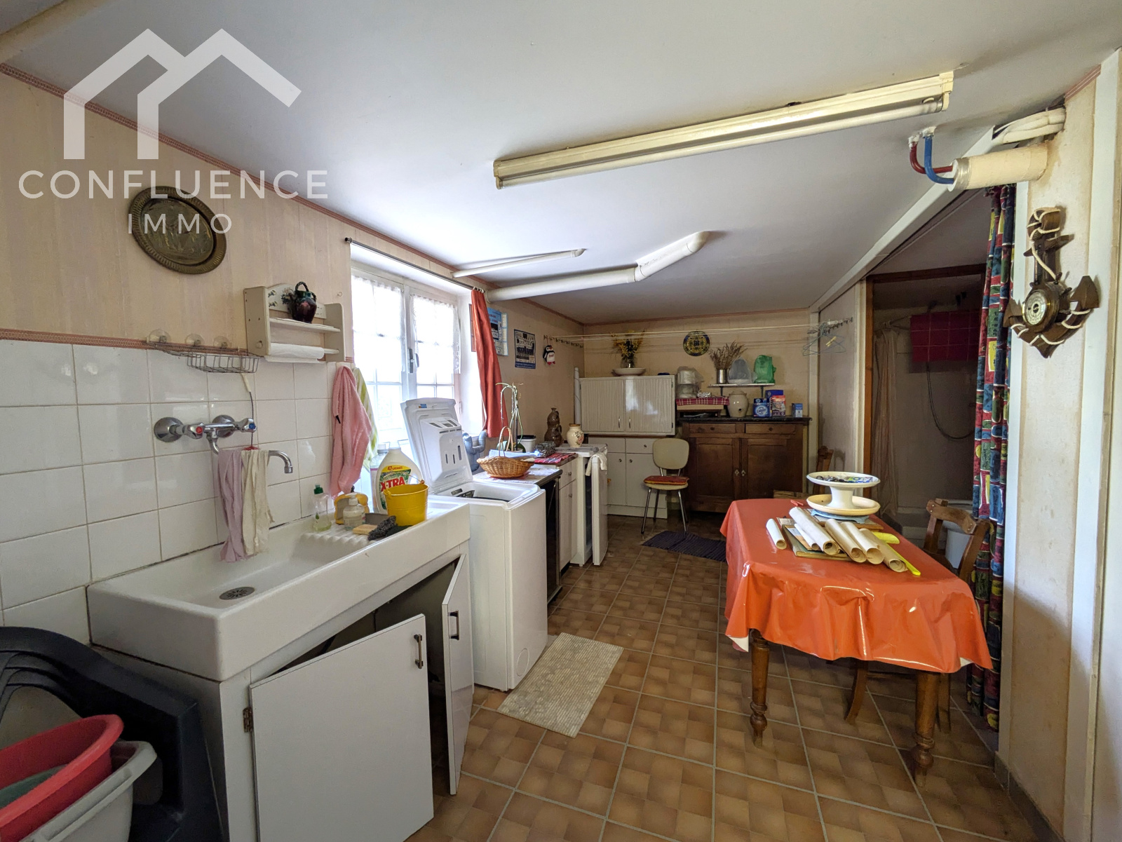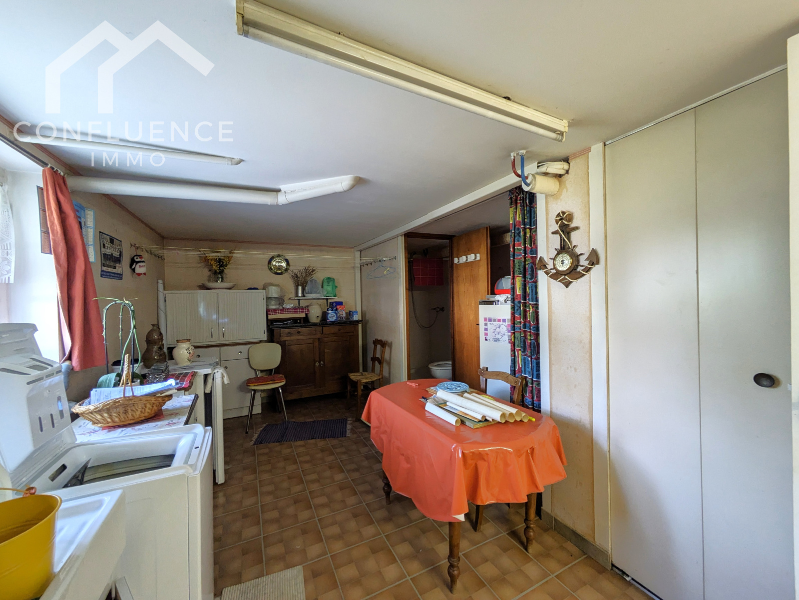 Au rez de chaussée, vous trouverez un spacieux garage avec porte électrique, une cuisine d'été, une chambre de plus de 14m², un espace douche avec wc et la chaufferie (pompe à chaleur air/eau de septembre 2023).