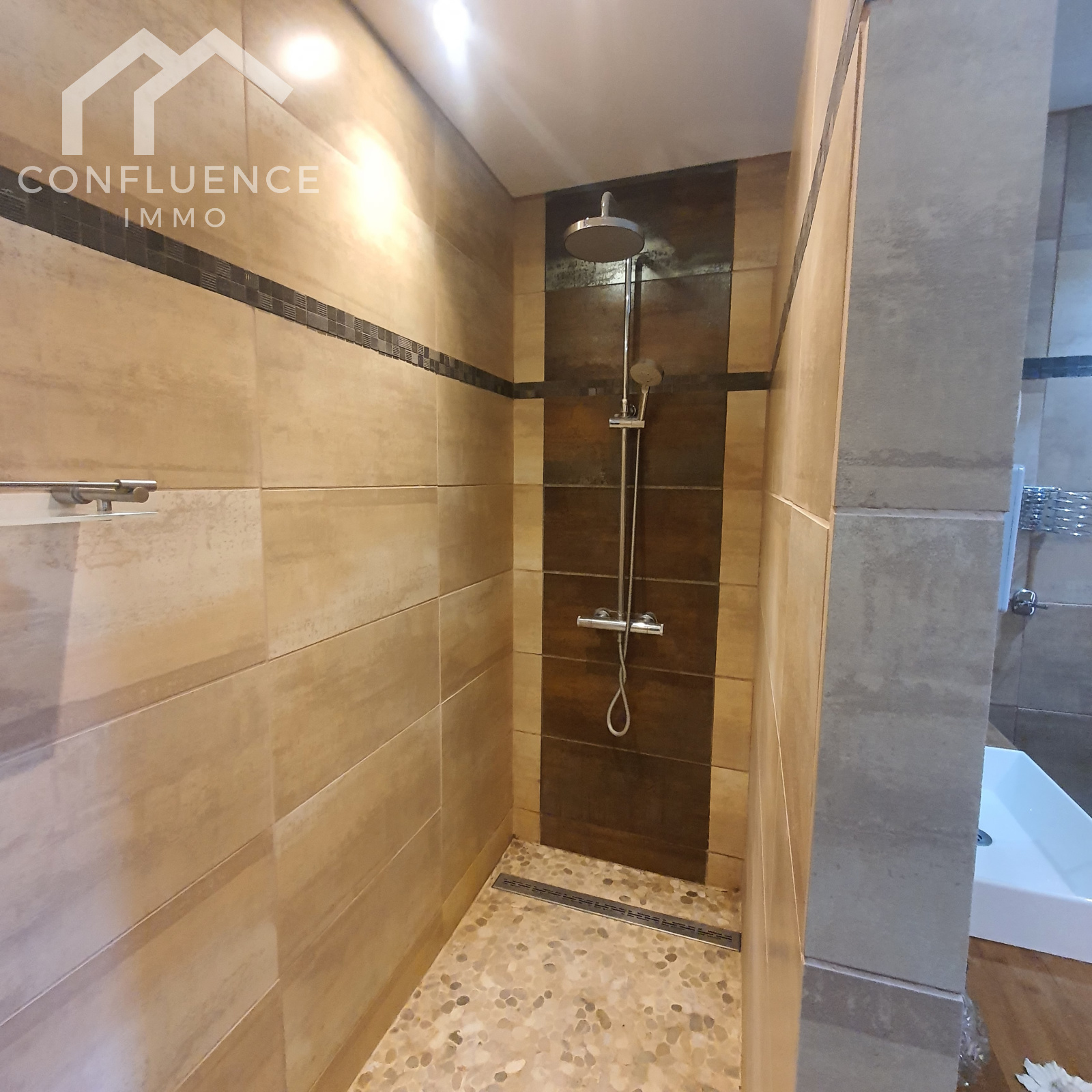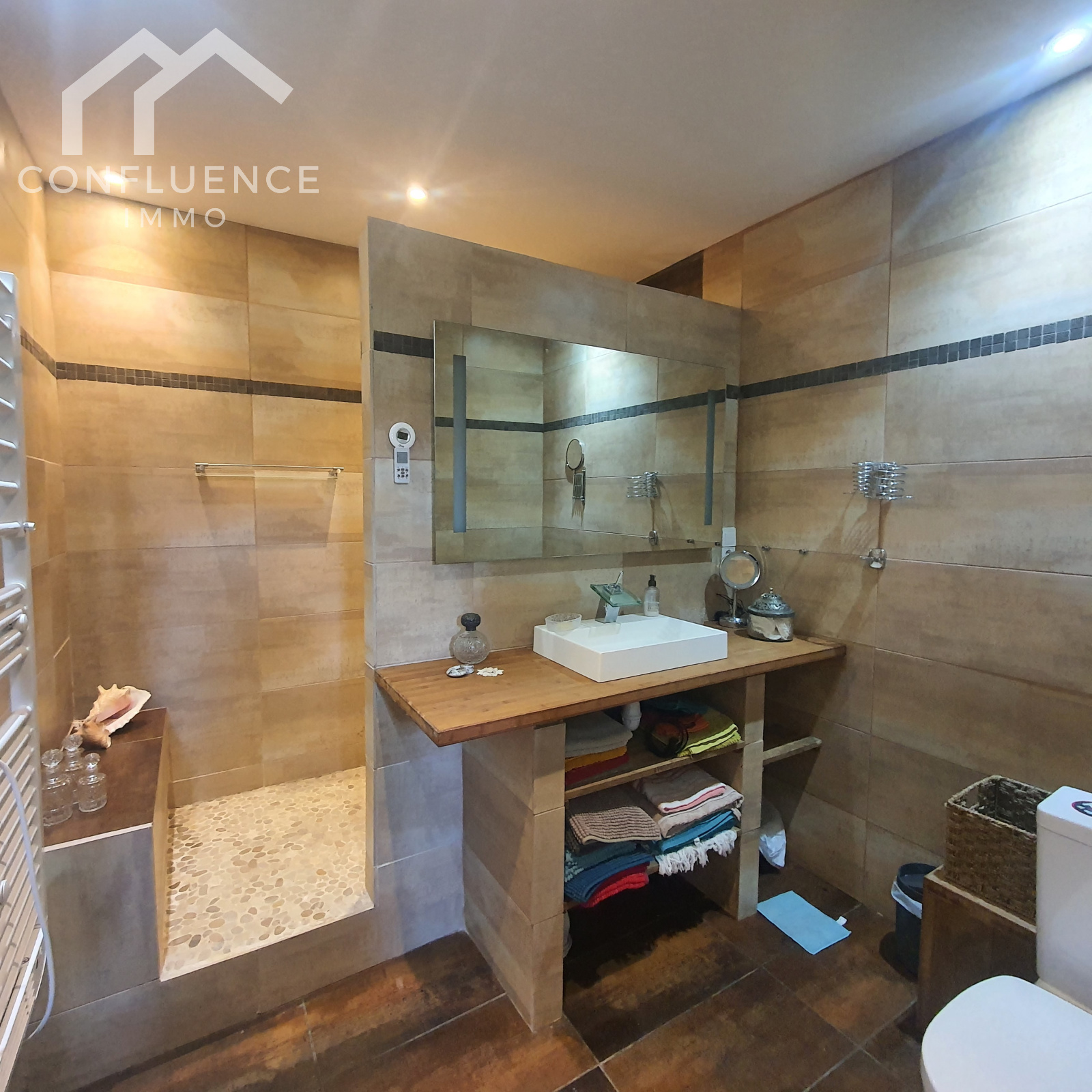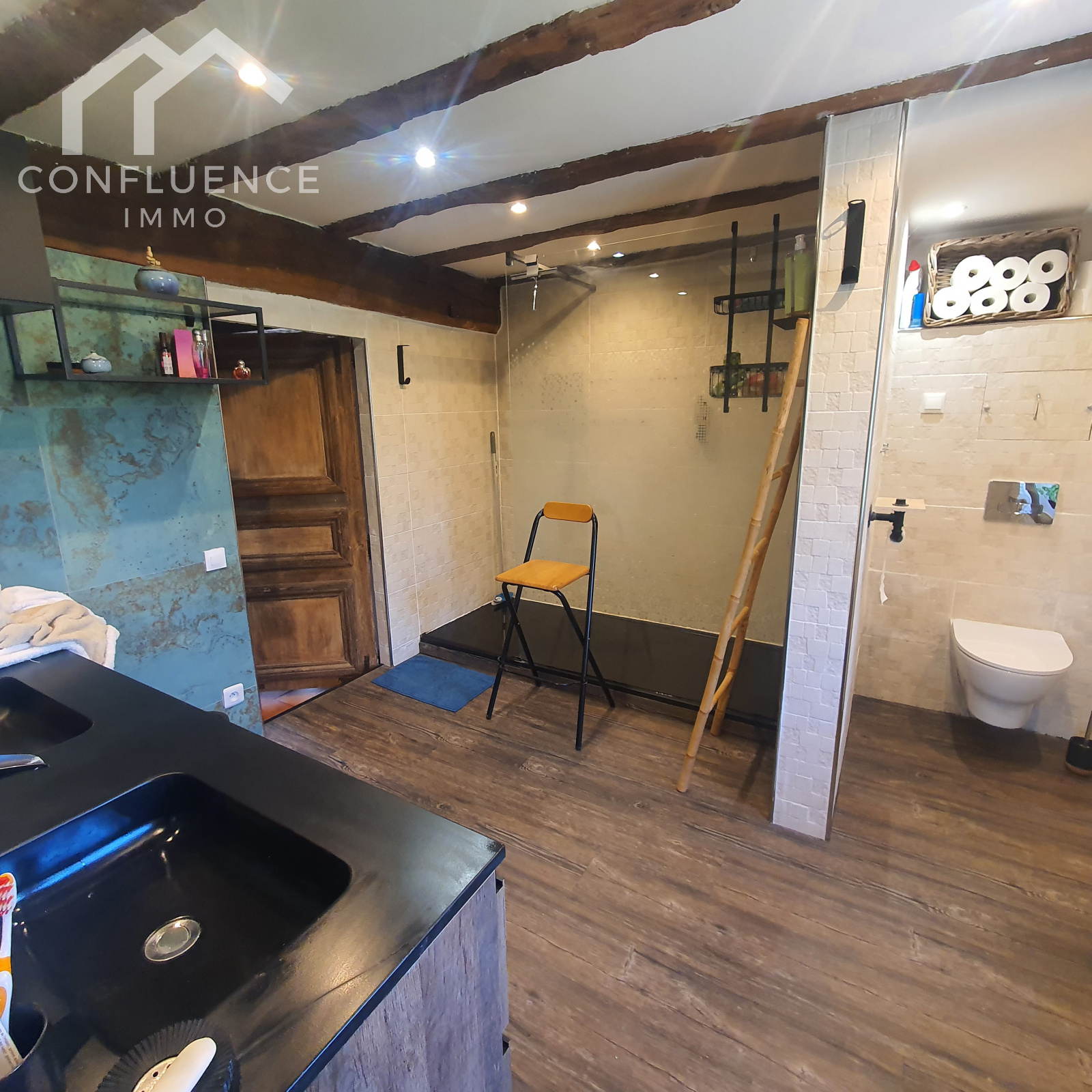 Double vasque - douche - WC - VMC parquet sêche - serviettes 3.38*3.31